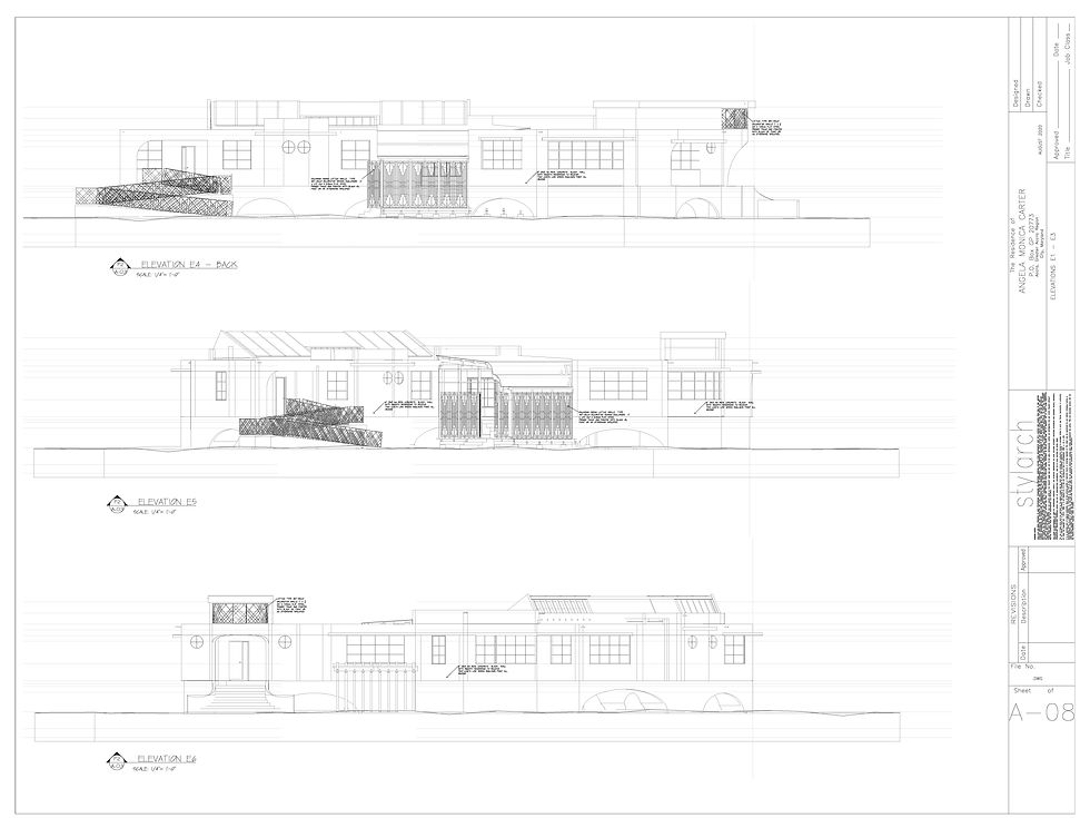 The proposal is a concede structure, raised off the ground, and has a partial slab roof and parapet. The design style has vestiges of art deco revival based on research and technical compatibility within the context of the surrounding community. Currently under construction.